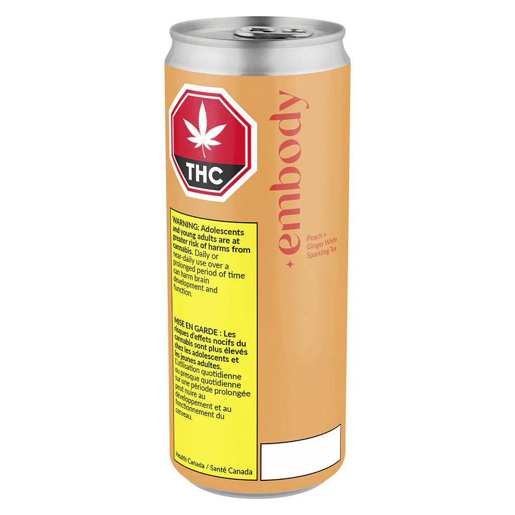 At embody, we are passionate about changing the conversation about wellness to thinking beyond what’s available and to look at what’s possible. We push the limits on wellness trends and bring unique CBD forward ideas to market. embody Peach + Ginger White Sparkling Tea combines the delicate flavours of fresh sweet peach with a touch of spicy ginger in a decaffeinated white tea with 40 mg of CBD and 2 mg of THC to produce a high quality and highly flavourful high CBD beverage.