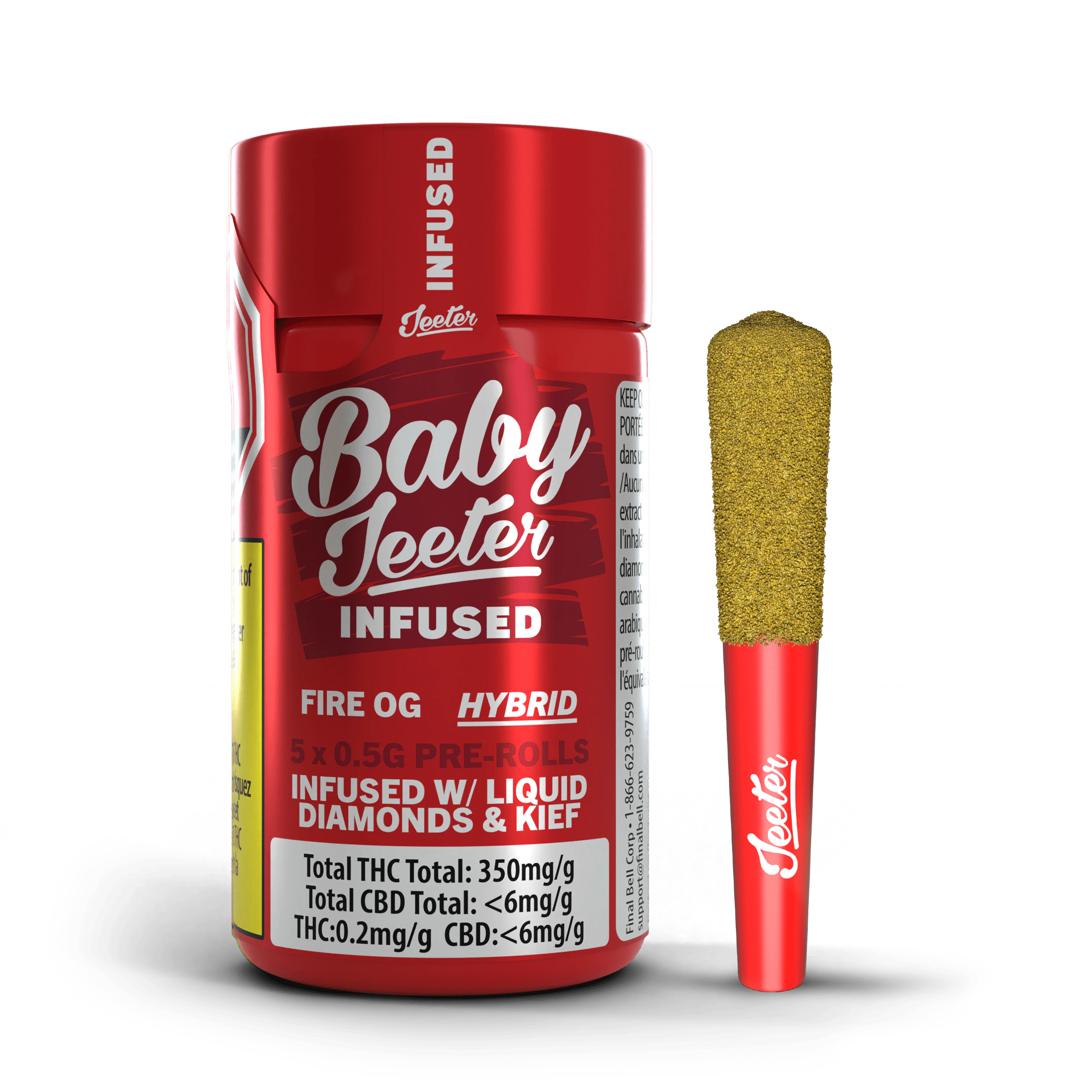 Get ready, Canada! Jeeter is making its grand debut in the Great White North. Baby Jeeters promise an experience that's anything but small. Every meticulously crafted pre-roll is infused with diamonds, crowned with a layer of kief and charged with a burst of unparalleled flavour. Embrace the best, Canada. Jeeter has landed. Fire OG evokes the essence of its namesake, an indica dominant hybrid descended from the notorious OG Kush and SFV OG Kush. It has an aroma reminiscent of fresh lemon zest and a palate that dances with sweet citrus and spicy undertones.