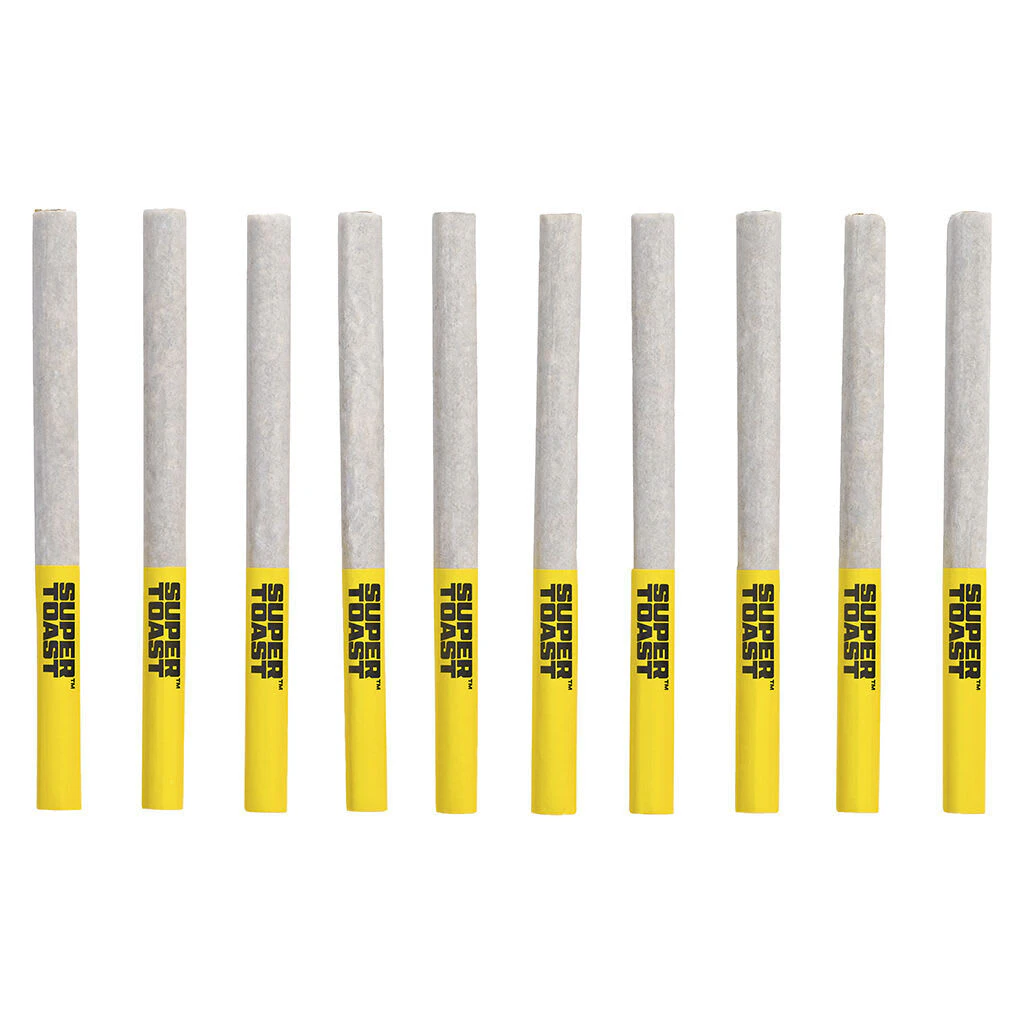 These fine pre-rolls are slim like Jim, packed straight and steady from top to bottom. Stuffed with Rockstar bud, a gassy and spicy indica. All you need is a light. Super Toast. Always Ready.