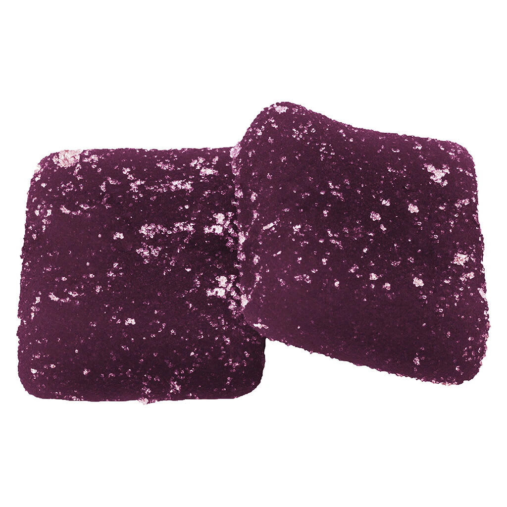 Wyld Boysenberry indica-enhanced CBD:THC:CBN soft chews are a 2:1:1 ratio product featuring a CBD-dominant dose of three cannabinoids. Made sustainably using real fruit, botanical terpenes, and natural flavours, each soft chew contains 10mg CBD, 5mg THC, and 5mg CBN for a total of 20mg CBD, 10mg THC and 10mg CBN per pack. All Wyld soft chews are packaged in a compostable pouch, and our recipes are formulated by food scientists to provide consistent experiences that taste amazing. Wyld soft chews use sunflower lecithin to improve bioavailability and onset time and are made to be thermostable up to 55°C, with a firm texture that doesn’t stick to your teeth. Each Wyld Boysenberry indica-enhanced soft chew contains the terpenes myrcene, linalool, beta-caryophyllene, and terpineol. Wyld is proud to be a Climate Neutral Certified brand.