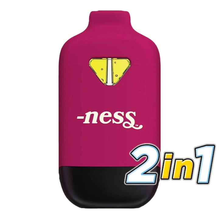 Two fruit flavours come together in one device in the -ness Grape Razz Dual Chamber Two-in-One all-in-one vape. Classic Grape on one side, tangy Razz on the other. Puff one flavour at a time or try both at once.