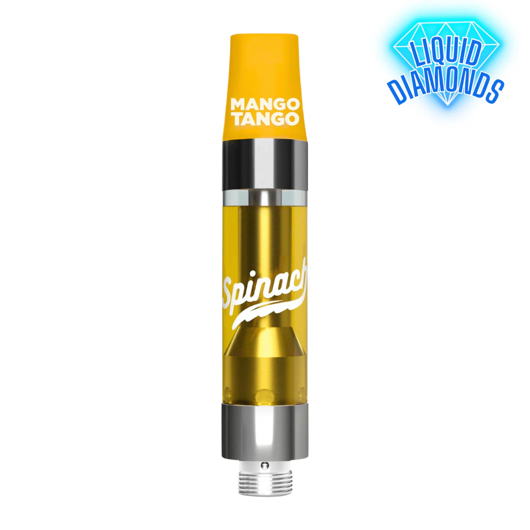 With this vape, it takes two to tango. The Spinach® Mango Tango Liquid Diamonds 1g vape is the flavour you can always count on. Inspired by the Mango Tango strain with a Tangie and True OG lineage, the 98.1% THC potency is no joke, and with liquid diamonds infusion this vape sparkles. While sweet, tropical, and luscious mango flavour notes and aromas fill the air, glide on a juicy cloud through your next vape sesh.